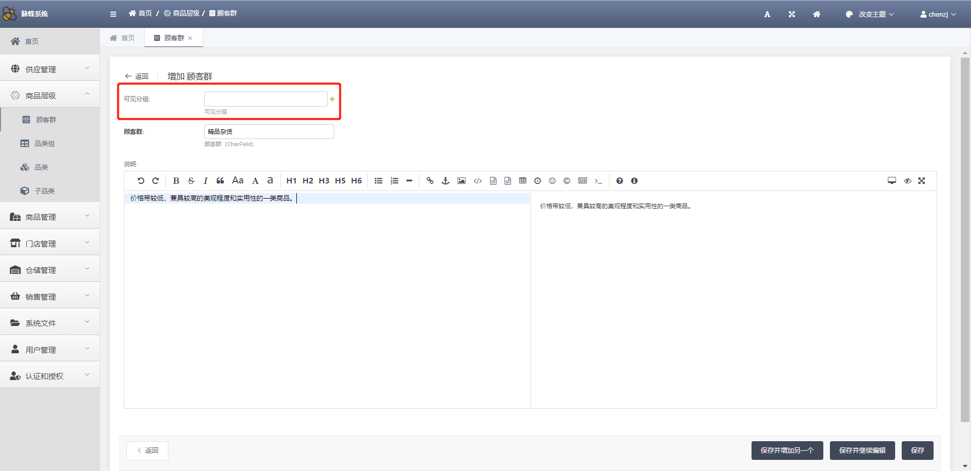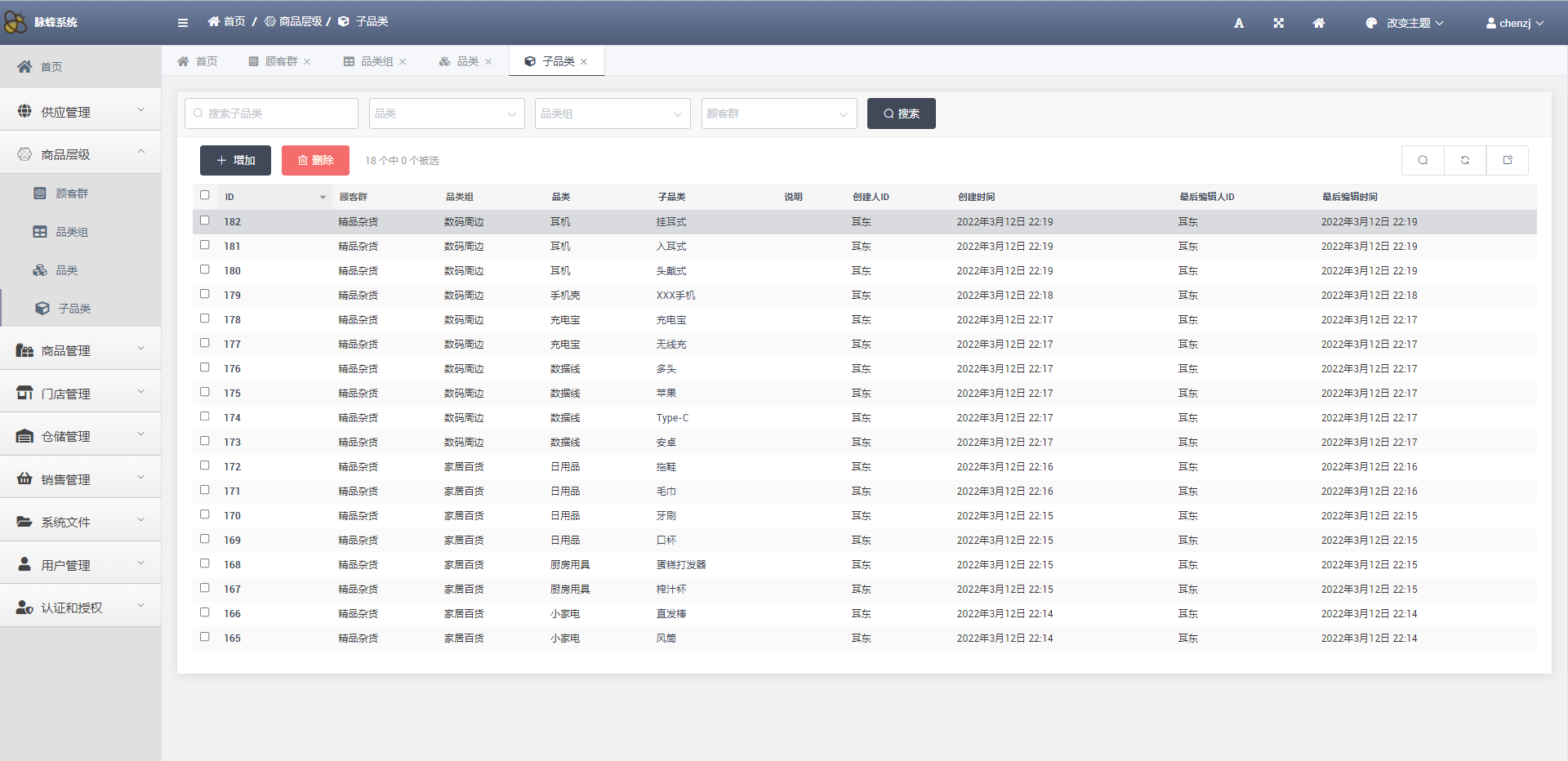 > s 商品层级是用来对商品数据进行聚类分析的依据。 系统已经按照一定的业务模式,将层级分为:`顾客群 → 品类组 → 品类 → 子品类`  ### 顾客群 顾客群:具有明显用户群体区分的经营范畴,如:服饰、发饰、杂货、季节品、等。  > d 不选分组时会自动设置为自己所在的全部分组可见。 ### 品类组 品类组:顾客群下对商品按照品类组合进行细分,如:杂货下可分为数码周边、家居百货等。  ### 品类 品类:品类组下对商品按照类别进行再一次细分,如:家居百货下可分为小家电、厨房用具、日用品等等。  ### 子品类 子品类:在品类下进行更细致的划分,如小家电下可以分出,风筒、直发棒等。  > d 对商品进行聚类可以从数据中归纳出有效结果,如: 什么类别的商品好卖什么不好卖? 什么类别的商品在什么时候好卖、在什么时候不好卖等等等。